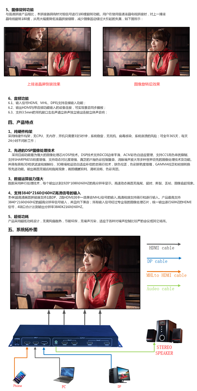 【深圳市美佳愛(ài)-矩陣切換器,視頻拼接處理器生產(chǎn)廠家電話400-997-9971】高清4K電視機(jī)拼接盒產(chǎn)品通過(guò)ISO9001_3C認(rèn)證,專(zhuān)業(yè)提供LED視頻處理器,監(jiān)控音視頻矩陣切換器,DVI/SDI/RGB/HDMI/VGA混合矩陣,外置拼接處理器,視頻服務(wù)器,云處理器,液晶大屏幕處理器,視頻分配器,網(wǎng)絡(luò)高清數(shù)字解碼矩陣主機(jī)生產(chǎn)廠家,高品質(zhì),穩(wěn)定性強(qiáng)的產(chǎn)品和服務(wù),提供報(bào)價(jià)方案,價(jià)格/施工安裝售后維修等